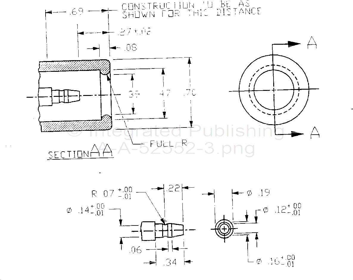 1. Unless otherwise specified, dimensions are in inches. Tolerances are ± .005 on decimals, ± 1° on angles, and ± 0.015 on rubber products.