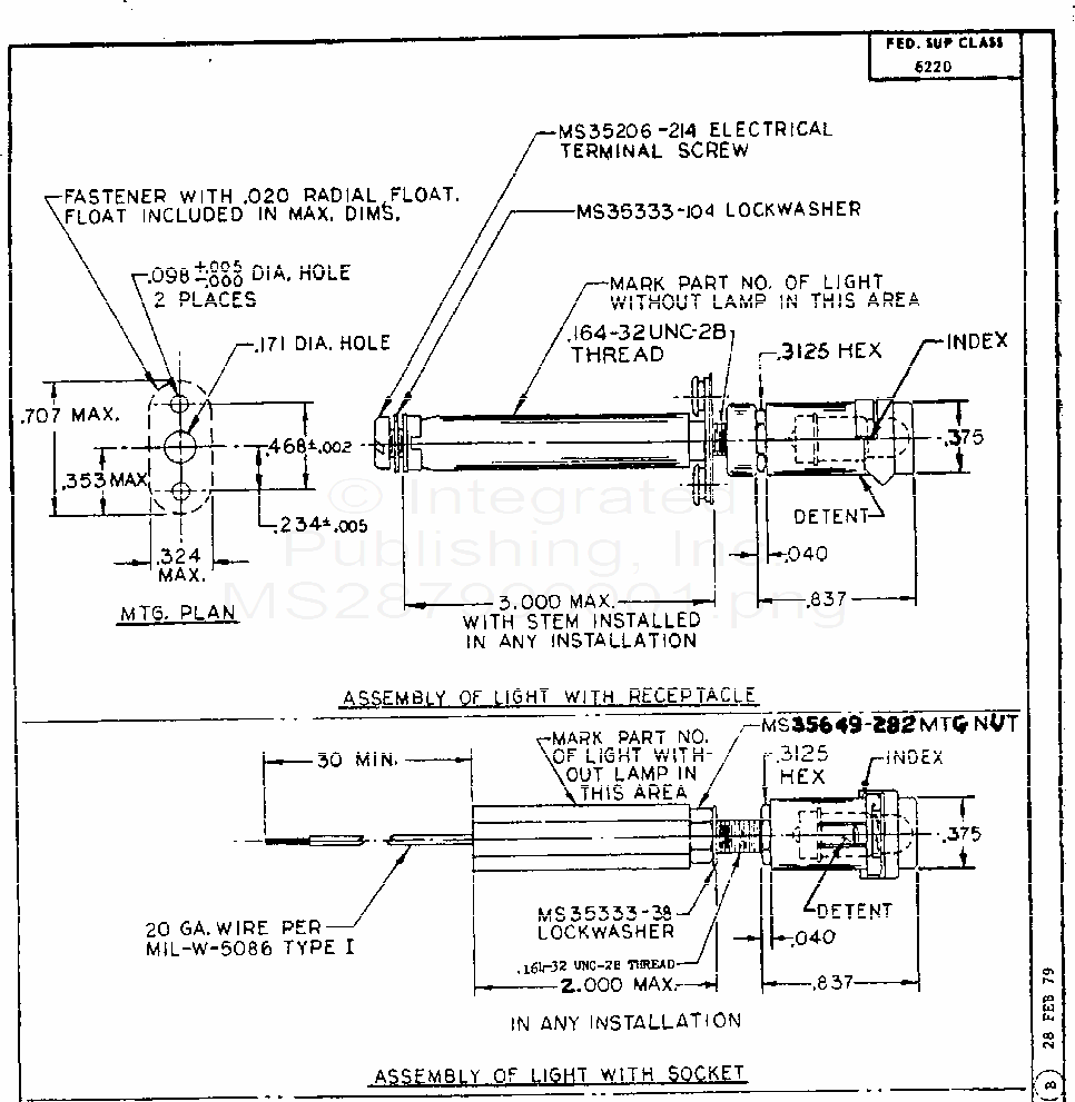 MS28799 Light, Cockpit, Aircraft, Instrument, Post Type, Universal